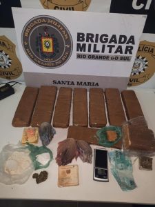 De acordo com a BM, a apreensão aconteceu após uma mulher, de 21 anos, que veio de Porto Alegre, desembarcar na Rodoviária de Santa Maria e se deslocar até a Avenida Borges de Medeiros, no Bairro Salgado Filho, zona norte da cidade. Na ocasião, ela entregou uma embalagem com droga para um jovem de 21 anos, que fugiu para dentro de sua residência ao notar os policiais do 1º Regimento de Polícia Montada (1ºRPMon). Após revista pessoal e na residência, foram localizadas porções de cocaína, crack, maconha, dinheiro e uma balança de precisão. No local também foi presa a companheira do acusado.