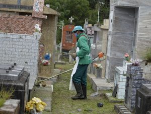 A Prefeitura de Santa Maria, por meio da Secretaria de Infraestrutura e Serviços Públicos, está realizando a limpeza de dois cemitérios durante esta terça-feira (15). As equipes trabalharam no corte da grama ao longo de toda a manhã no Cemitério Ecumênico Municipal, no Bairro Patronato.